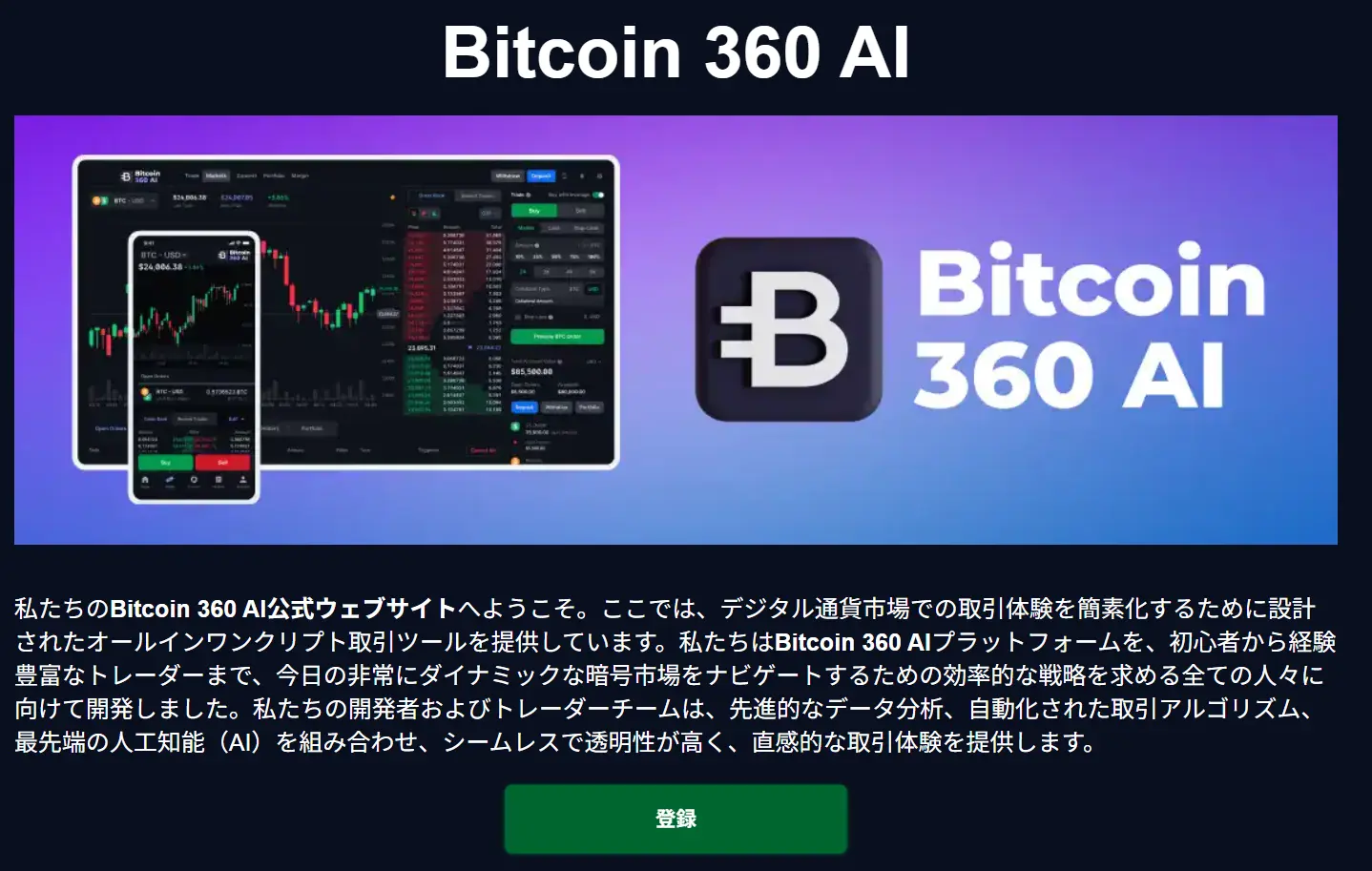 Bitcoin 360 AI は、AI を用いて仮想通貨の売買を自動化するツールとして宣伝されています。利用者はシステムに資金を預け、AI が売買判断を行ってくれるという仕組みで、「投資の専門知識がなくても始められる」という点が大きな魅力としてアピールされています。