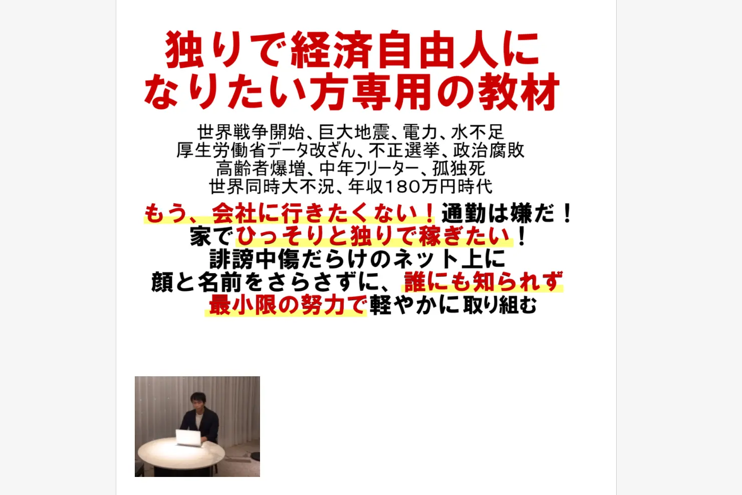 さて『独り経済自由人の教科書』という商材について取り上げたいと思います。