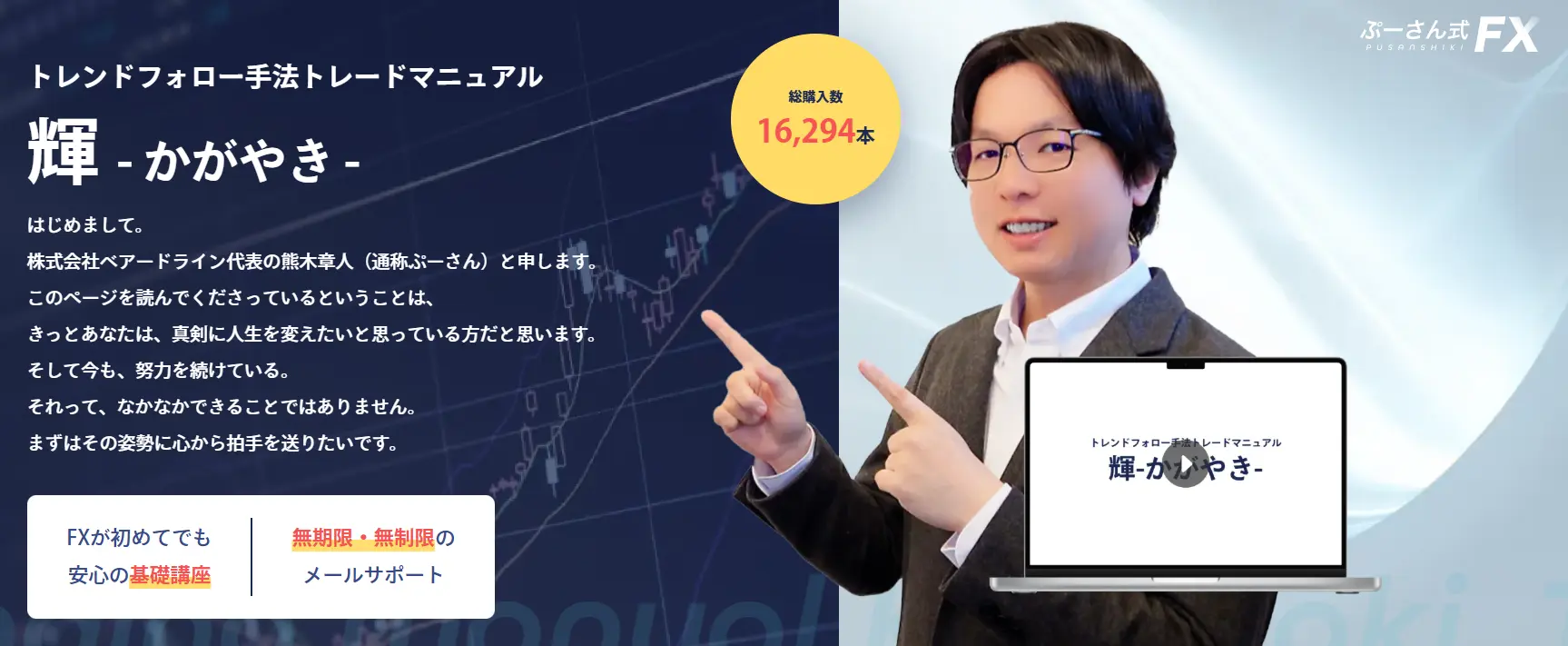 販売者であり講師でもある熊木 章人氏(ぷーさん)は、長年にわたりFX教材を販売・指導してきた経歴があります。シンプルなルールに基づくトレードを広める活動を行っており、教材販売の継続性やサポート体制の整備から一定の信頼性がうかがえます。