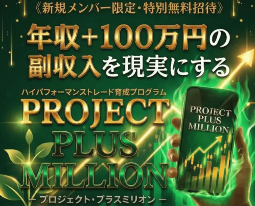 PROJECT PLUS MILLION は、“スマホだけで誰でも再現できる収益モデル”をうたう情報提供型サービスとして案内されることが多い形式です。ビジネスの仕組みよりも「手軽さ・自動化・高単価の収益性」が強調され、初心者でも始めやすいという印象を与える設計になっています。